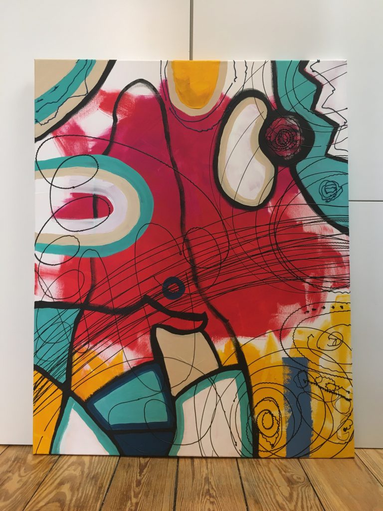 Einflüsse von der Außenwelt blieben aus. Ideen und Gefühle stauten sich auf und dann Frust breitete sich langsam im Kopf aus, deswegen Rot. Rot ist nicht meine Farbe aber sie hatte an diesem Tag gewonnen!